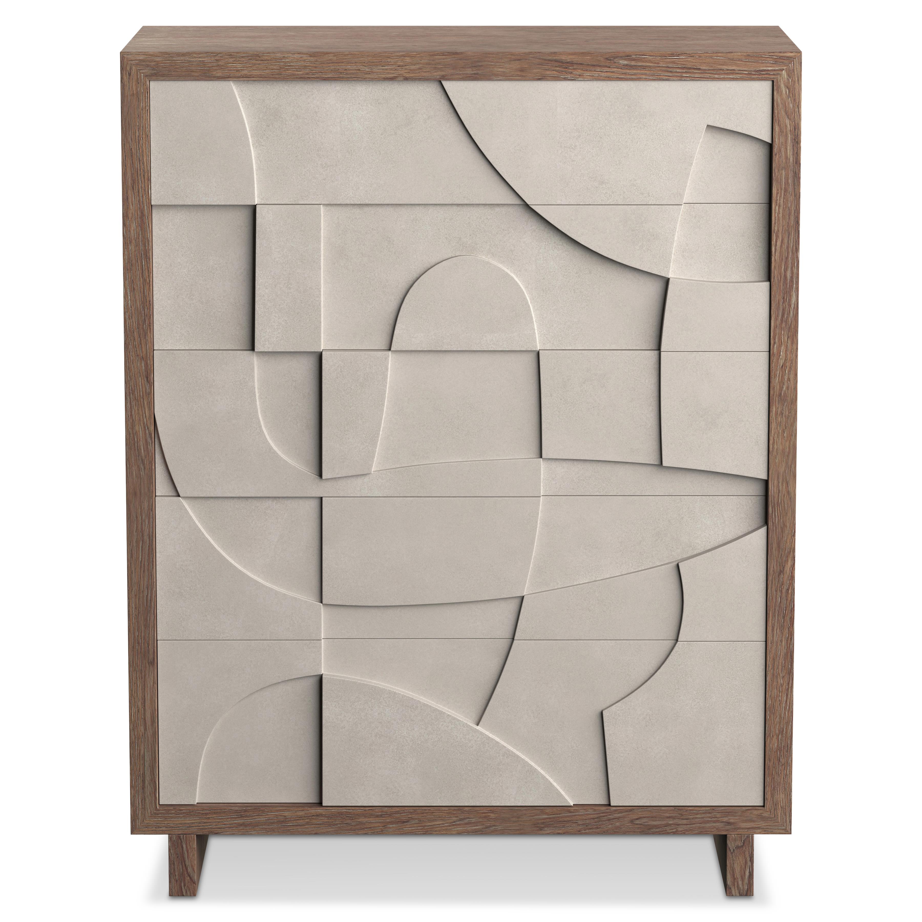 Texture and dimension create a statement-making design for this chest.
