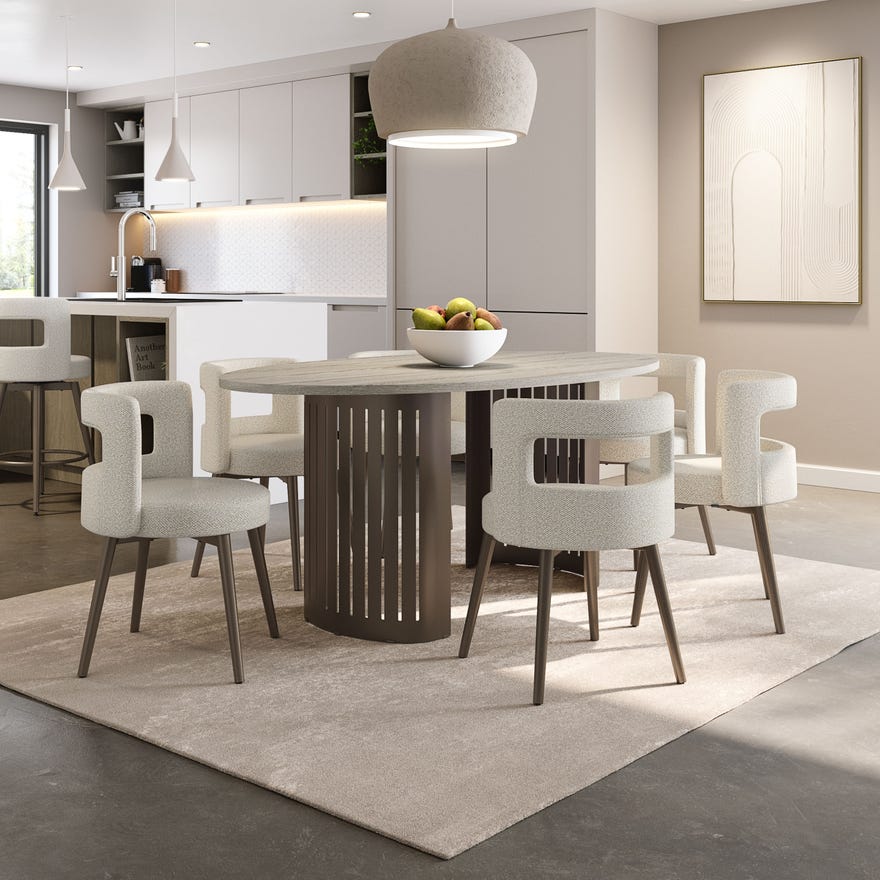 Discover the ideal balance of style and comfort with the Curtis swivel chair. Its modern design integrates a chic open back with curved lines and stylish metal legs. Relax on its padded upholstered seat and enjoy the comfortable support of the backrest. Featuring a swivel for added convenience and freedom of movement, this chair is designed to make every moment at the table enjoyable.