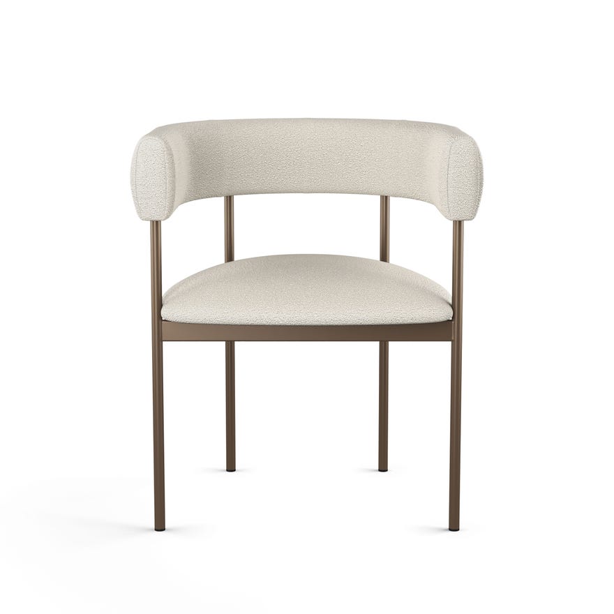 The Julius dining chair is the perfect furniture piece to elevate your dining room. Its refined silhouette showcases clean lines that align perfectly with contemporary interiors. Designed for comfort and style, it features a beautifully curved backrest that seamlessly extends into armrests, providing support during long conversations around the table. With its sturdy metal base crafted for long-lasting durability and its undeniable aesthetic, this chair is an essential addition to any modern home decor.