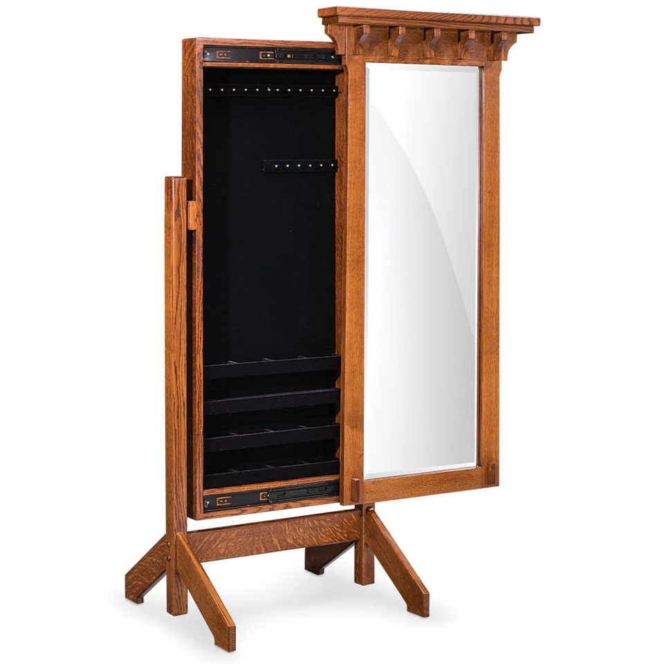 Features a beveled edge mirror.